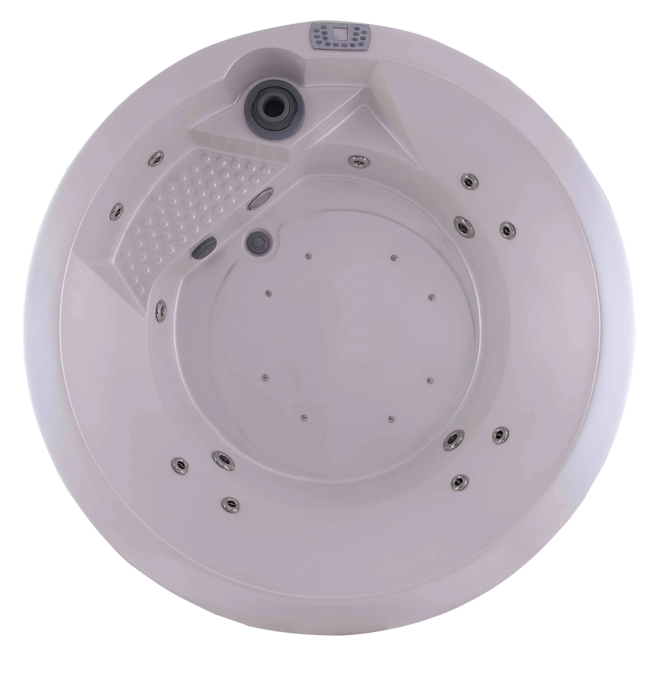 Гидромассажный спа бассейн S034 диаметром 2000 мм и высотой 700 мм рассчитан на комфортное размещение 3 человек. Чаша выполнена из качественного китайского белого акрила, обеспечивающего долговечность и эстетичный внешний вид.